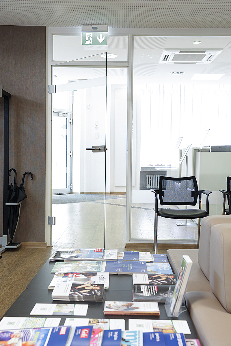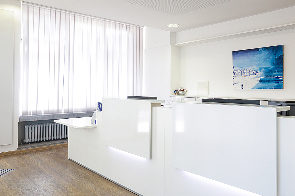 Die ebenerdige Praxis ist mit taktiler Führung, Hörverstärker für Schwerhörige sowie einem großen barrierefreiem WC behindertengerecht ausgestattet.